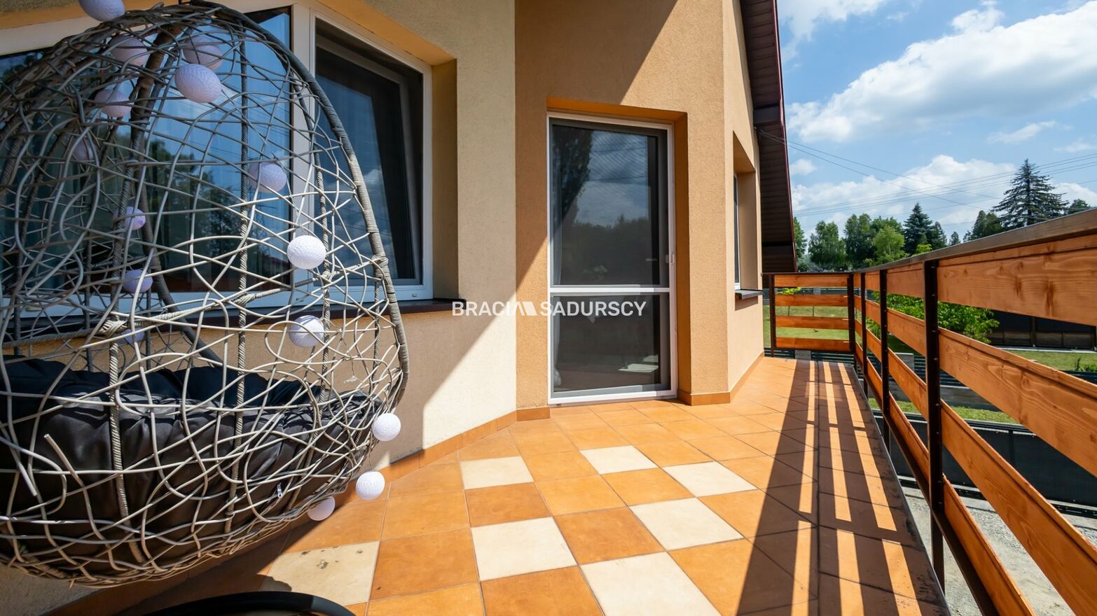 Lokal mieszkalny został wydzielony z dwóch budynków i zajmuje całą powierzchnie jednego domu oraz całe piętro budynku przyległego, tworząc przestronne mieszkanie ( 149 m 2 ) z garażem ( 25 m 2 ) i przynależną piwnicą ( 42 m 2 ). Do dyspozycji jest również część zielona wokół posesji, gdzie znajdziemy trawnik oraz miejsce do wypoczynku na przyległym do domu tarasie.